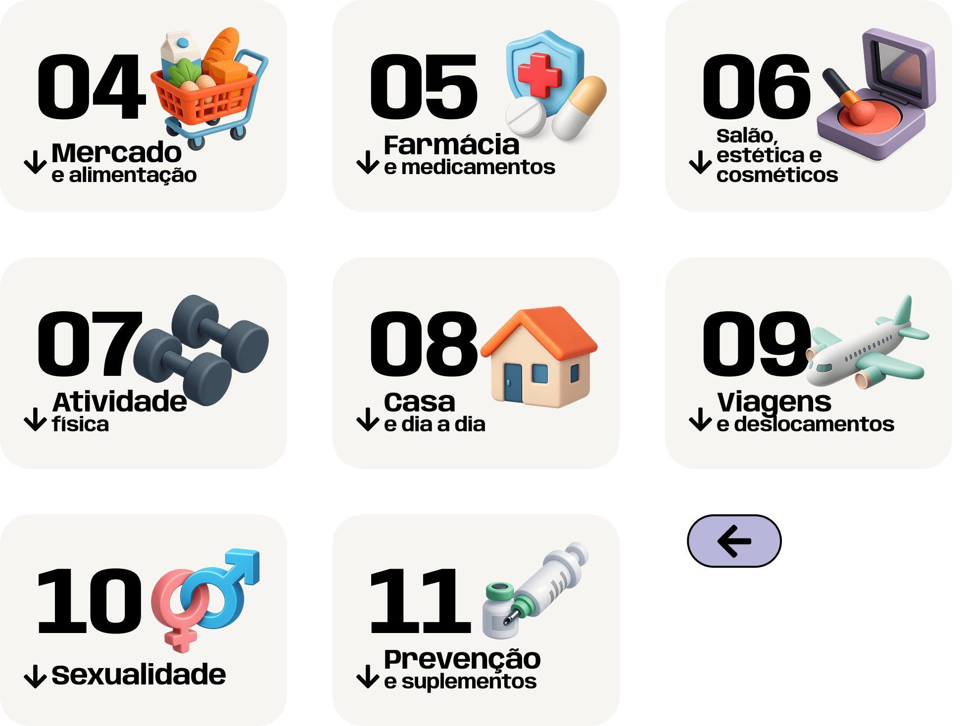 O conteúdo cobre o que você precisa saber durante a gravidez — o que evitar, o que moderar e o que fazer ativamente para uma gravidez saudável. Isso vale para qualquer fase que você esteja, e o Caderninho Digital continua sendo útil como guia de consulta rápida até o final da gestação, com acesso vitalício.